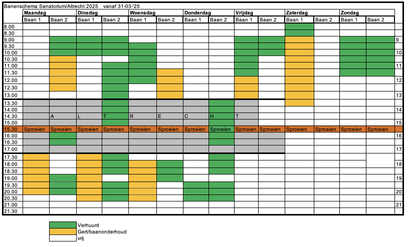 Het boeken van een van de twee banen gaat via Gert Bolk (Dit e-mailadres wordt beveiligd tegen spambots. JavaScript dient ingeschakeld te zijn om het te bekijken.)